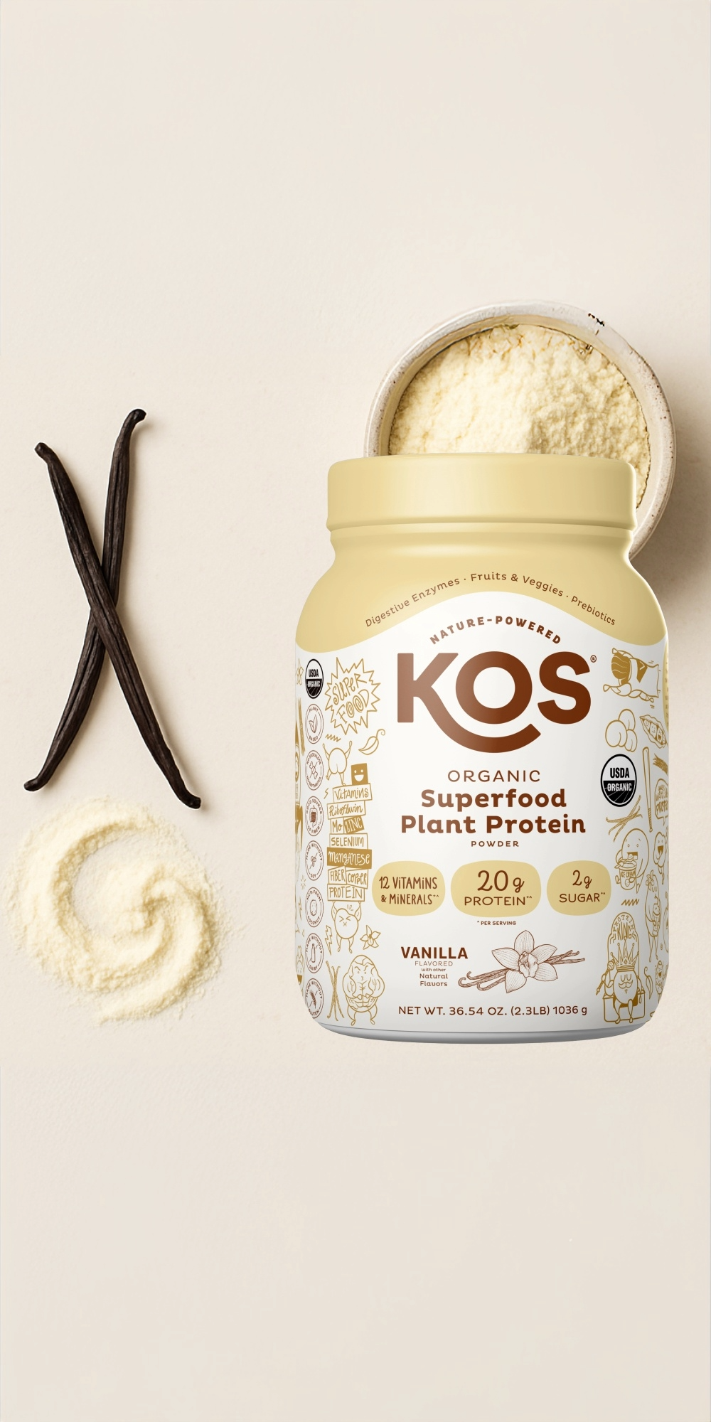 KOS is designed around real use. We use organic, plant-based ingredients chosen for taste, digestibility, and nutritional quality, without artificial sweeteners, fillers, or unnecessary additives.